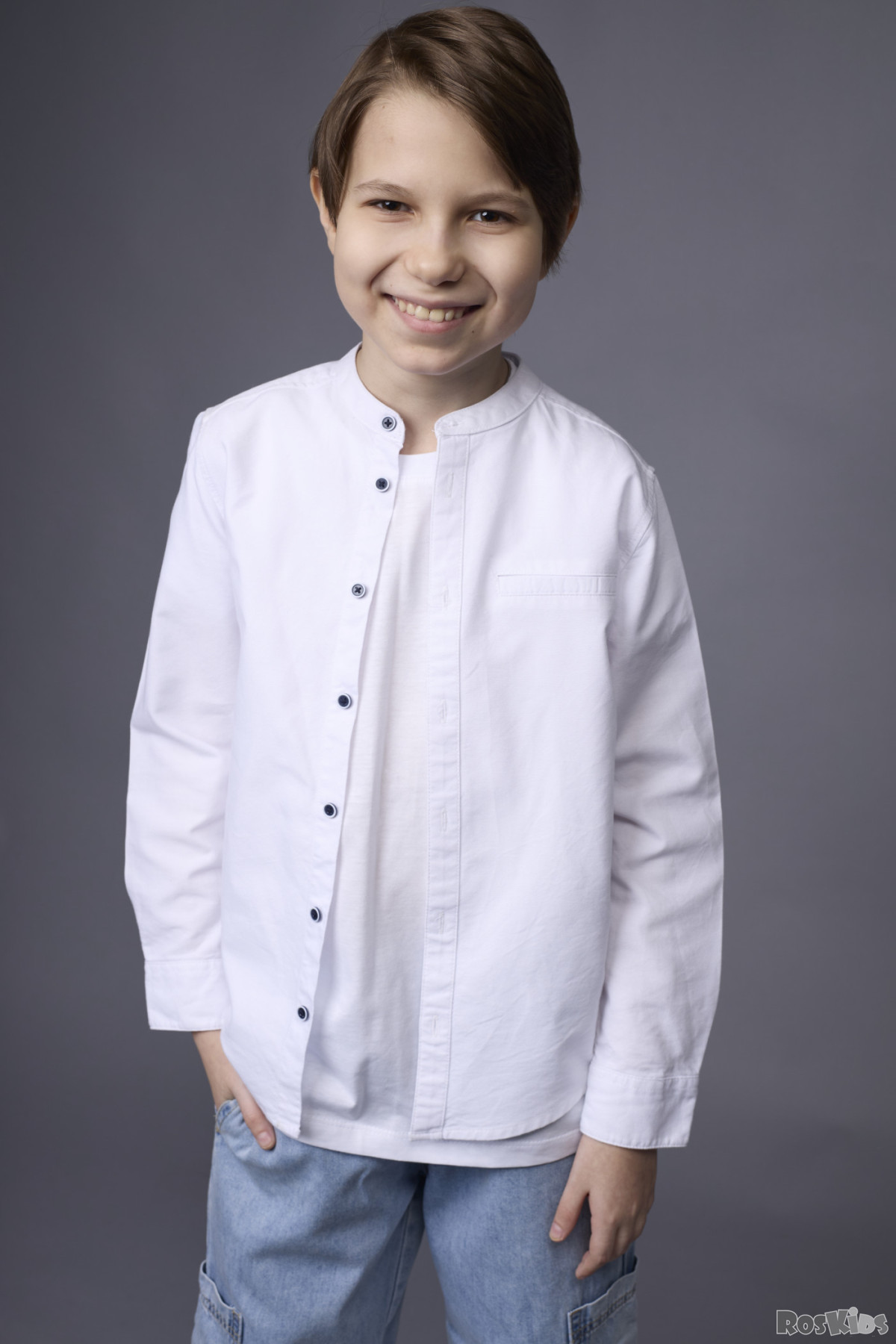 Велосипед, ролики, самооборона, самокат. Был опыт в съёмке принятие подарка от дедушки Мороза. Ходит в театральный кружок.